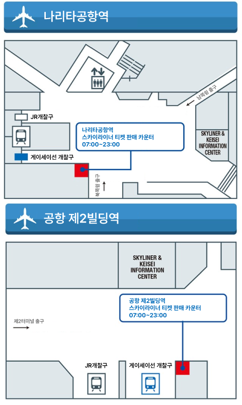 이용 가능 역 : 게이세이 우에노역, 닛포리역, 공항 제2빌딩역, 나리타공항역 ※닛포리역은 북쪽 개찰구(A 개찰구)만 가능